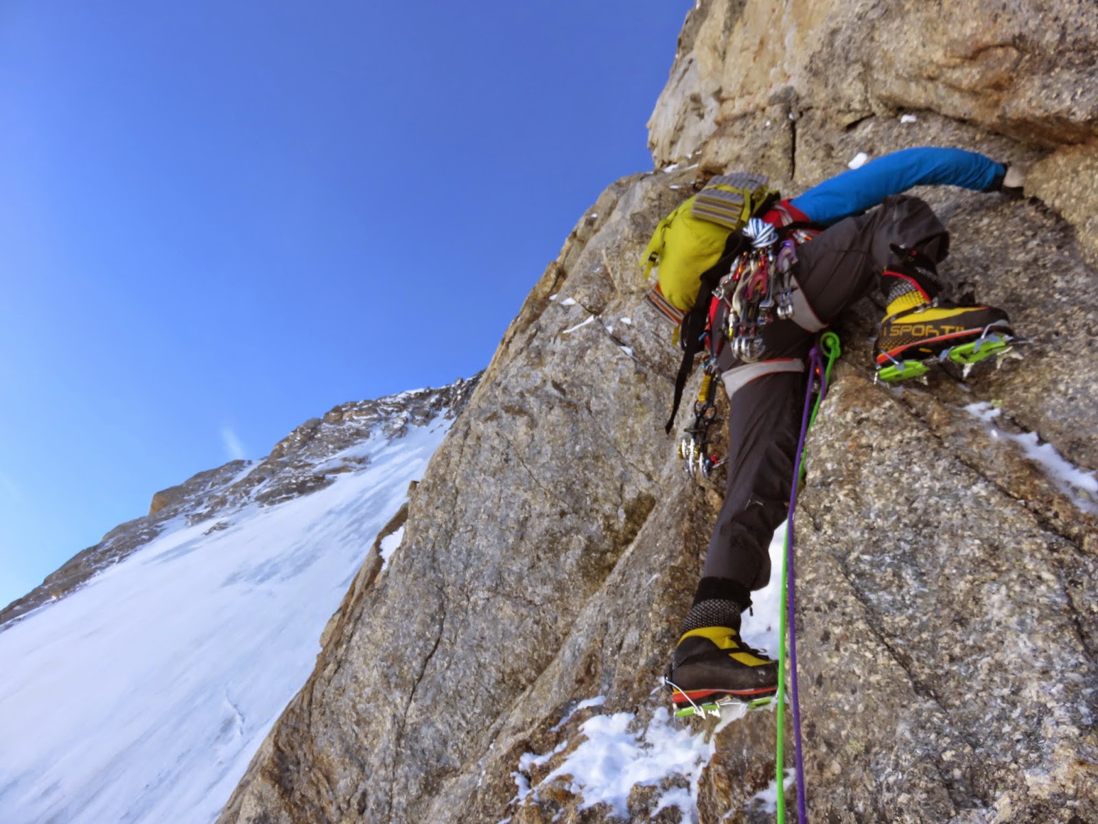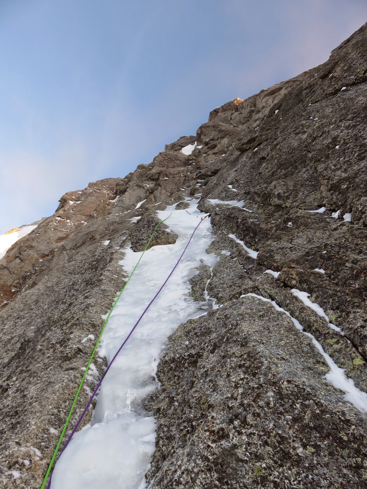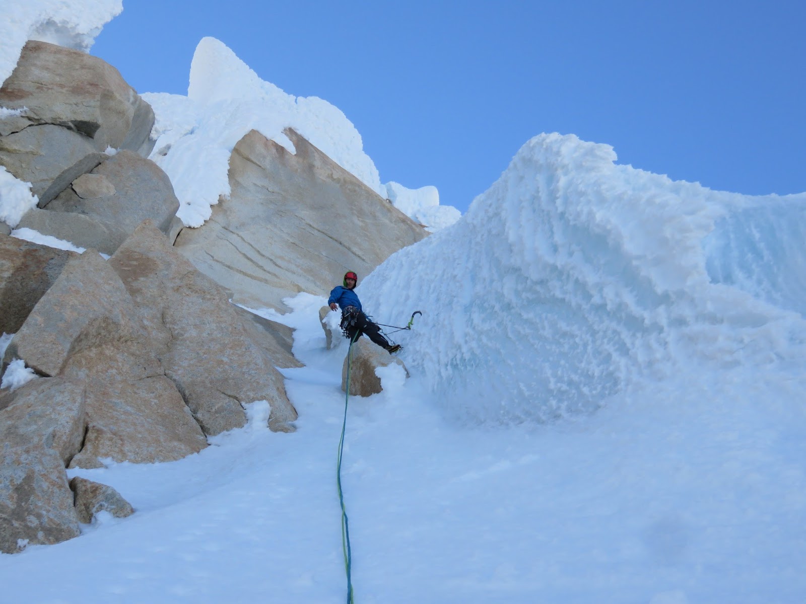 dopo aver lottato contro una sezione con molto verglas fisso le corde