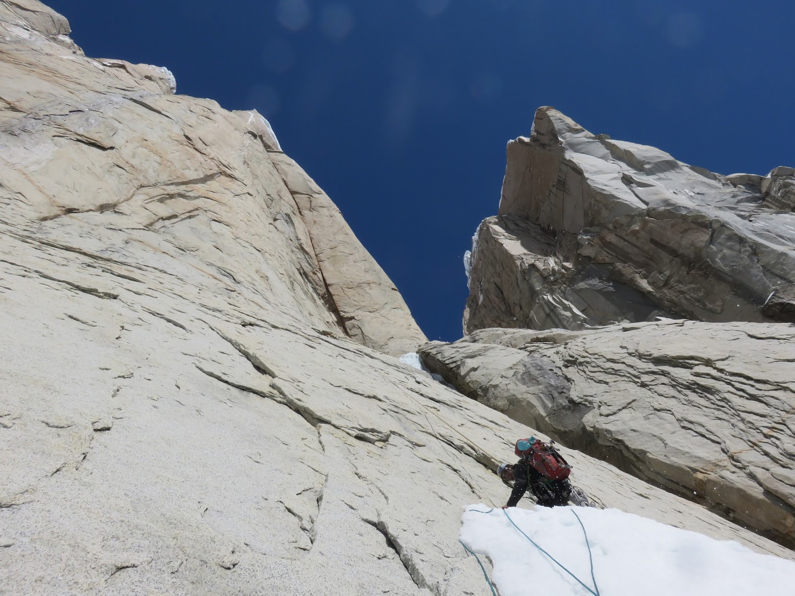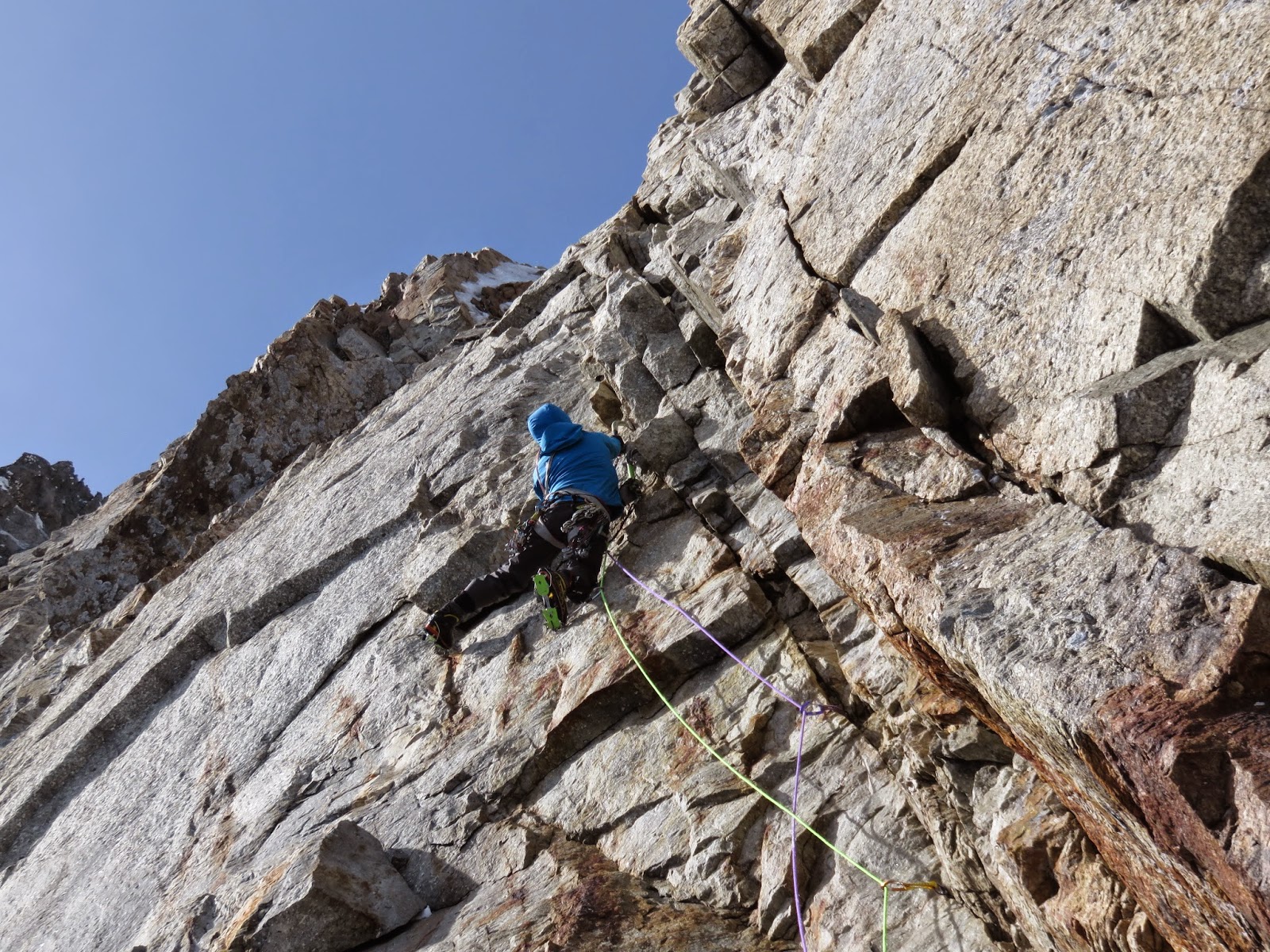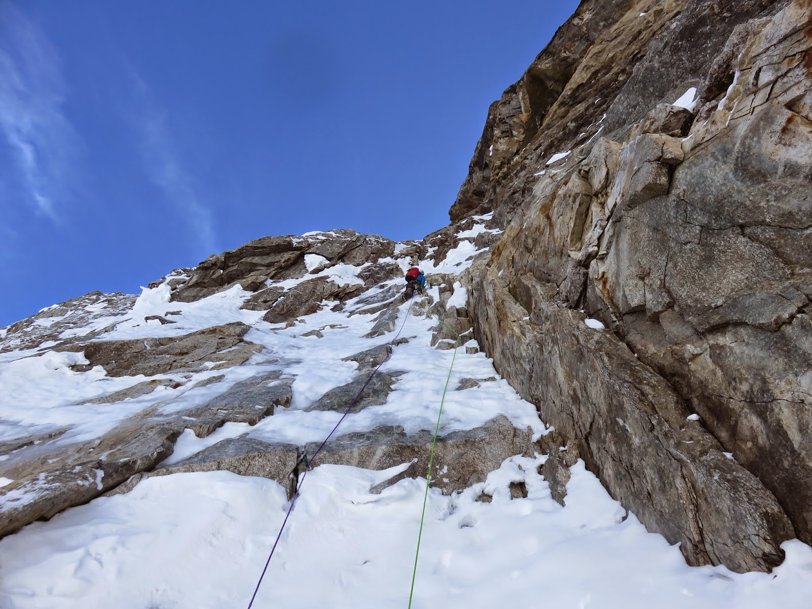 dopo aver lottato contro una sezione con molto verglas fisso le corde