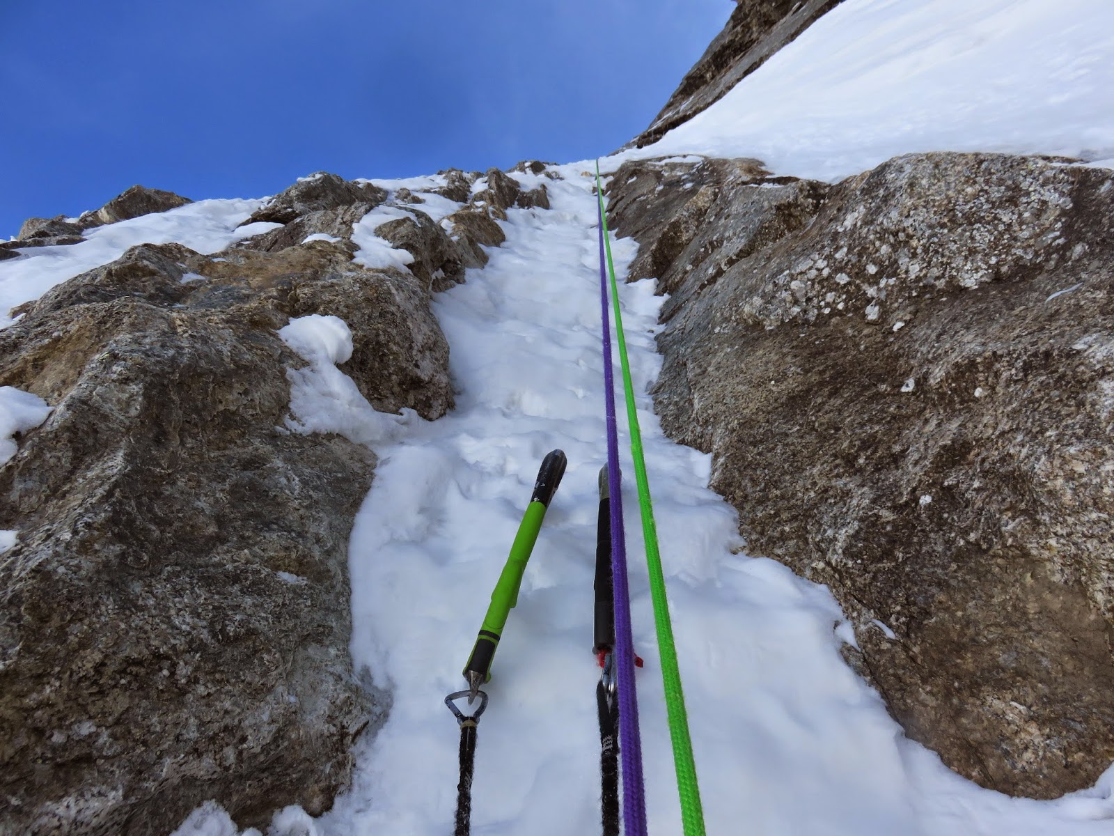 sale i primi tiri del canale, non facili, a causa della neve poco