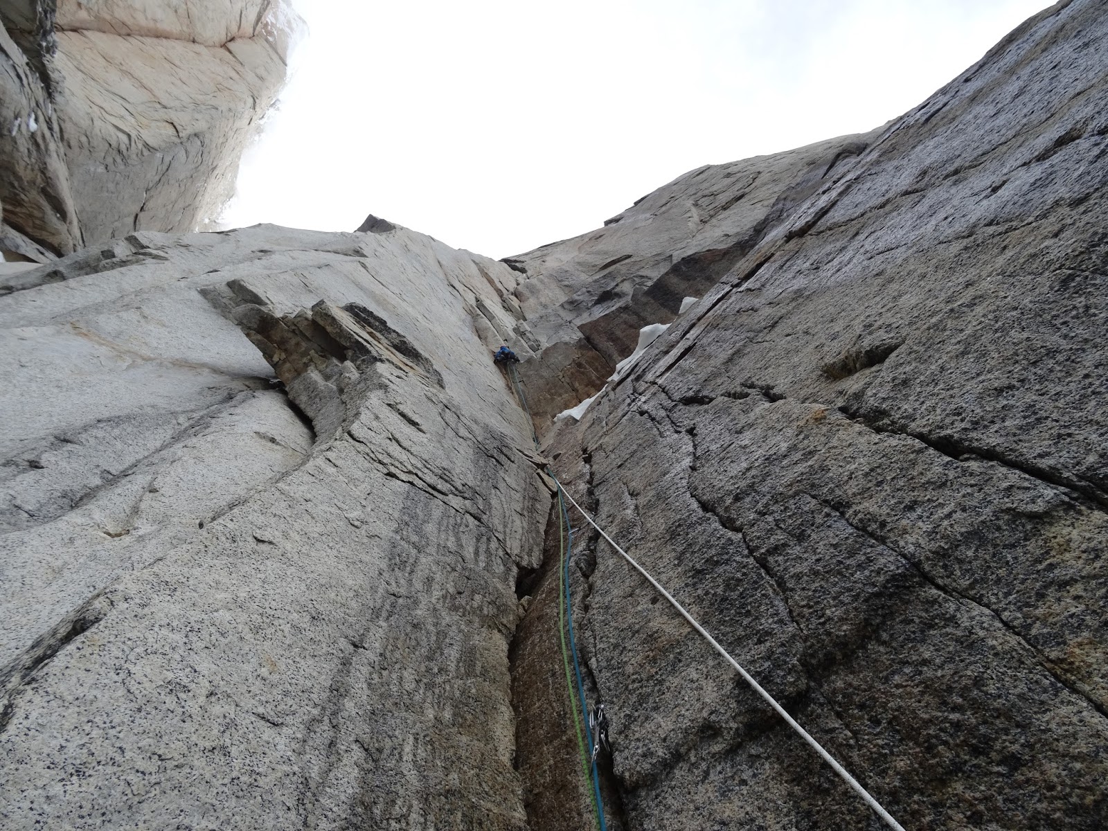 | Approfittiamo di un tempo incerto per salire la Aguja Rafael |