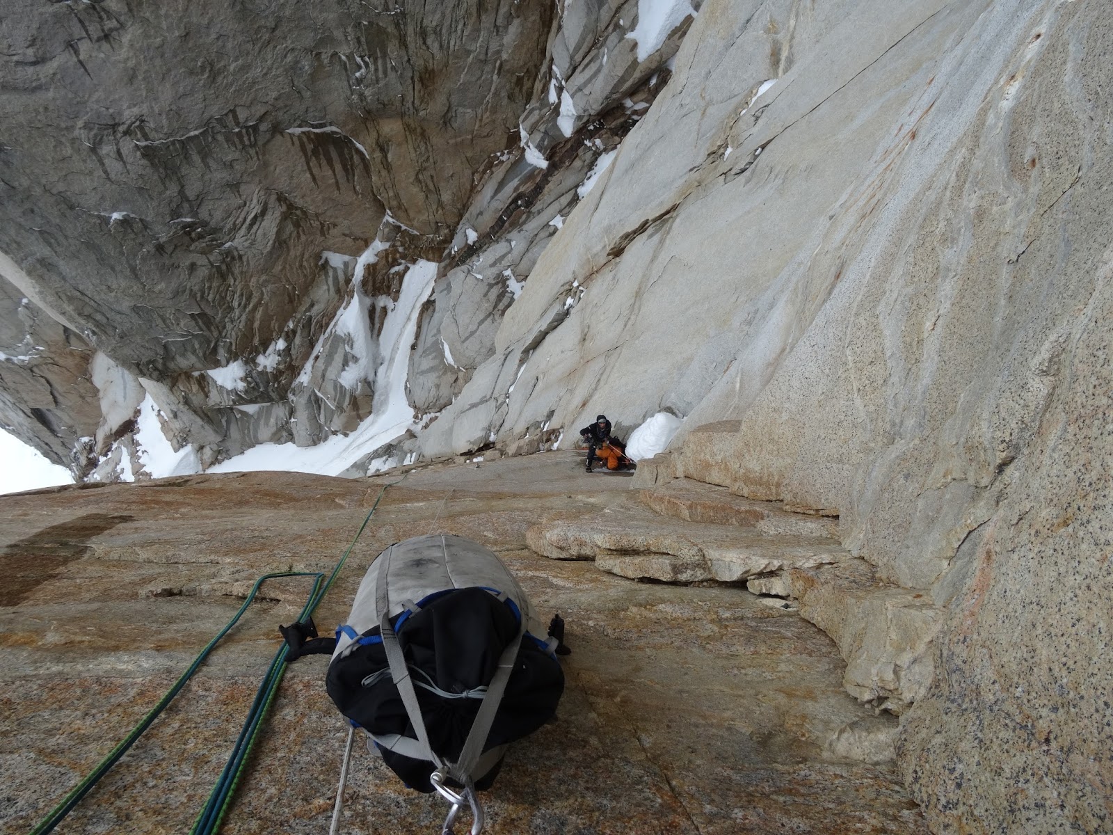 | nonostante la nostra inesperienza in materia di risalite a jumar e scalata artificiale abbiamo avuto il tempo di adattarci e sviluppare un minimo di efficacia |